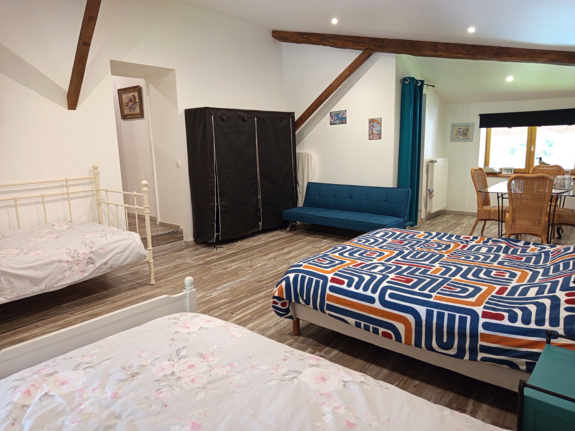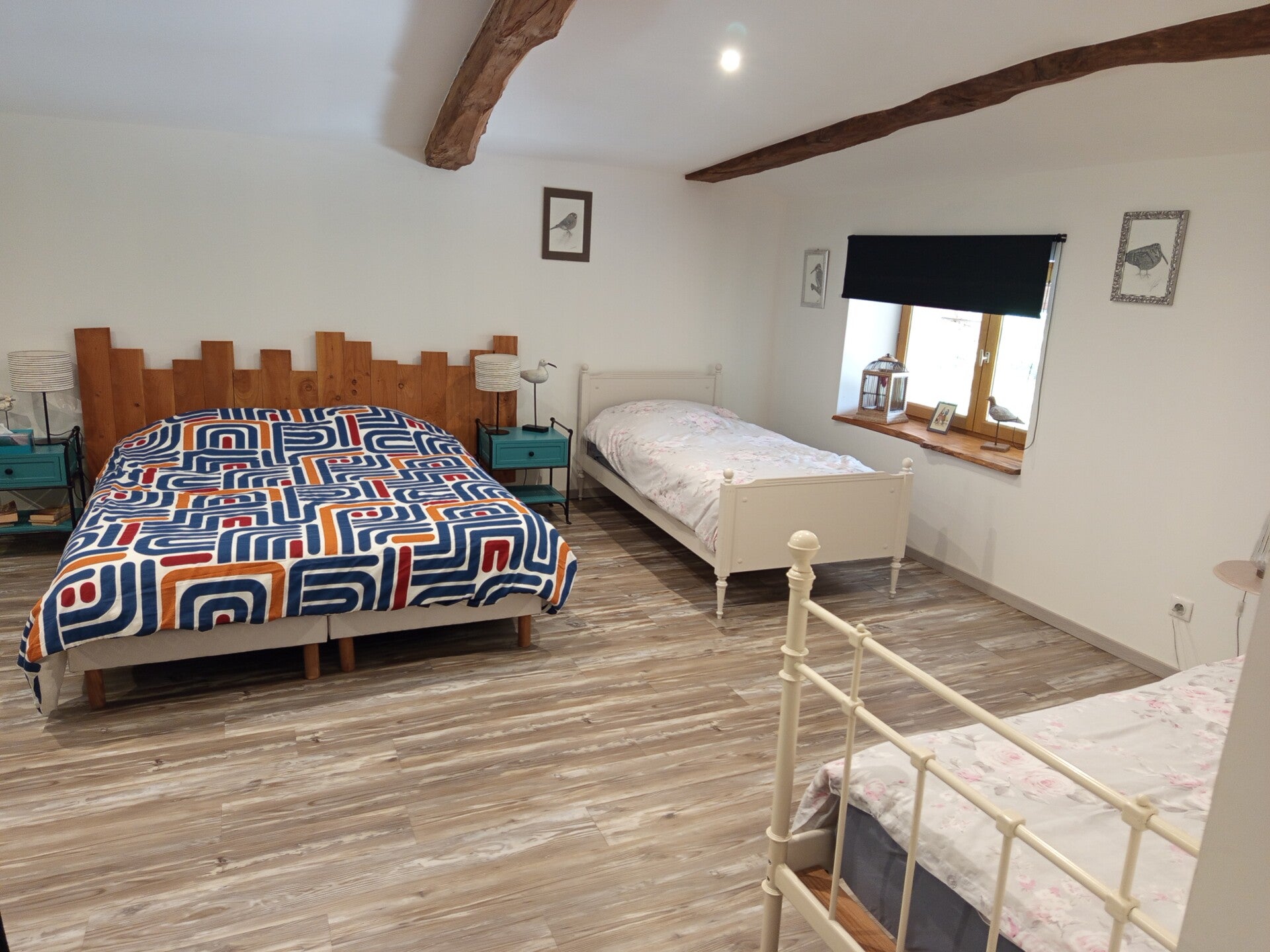 Chambre de 45 m2 (capacité 4 personnes) située à l'étage. 1 lit double de 160 et 2 lits simple